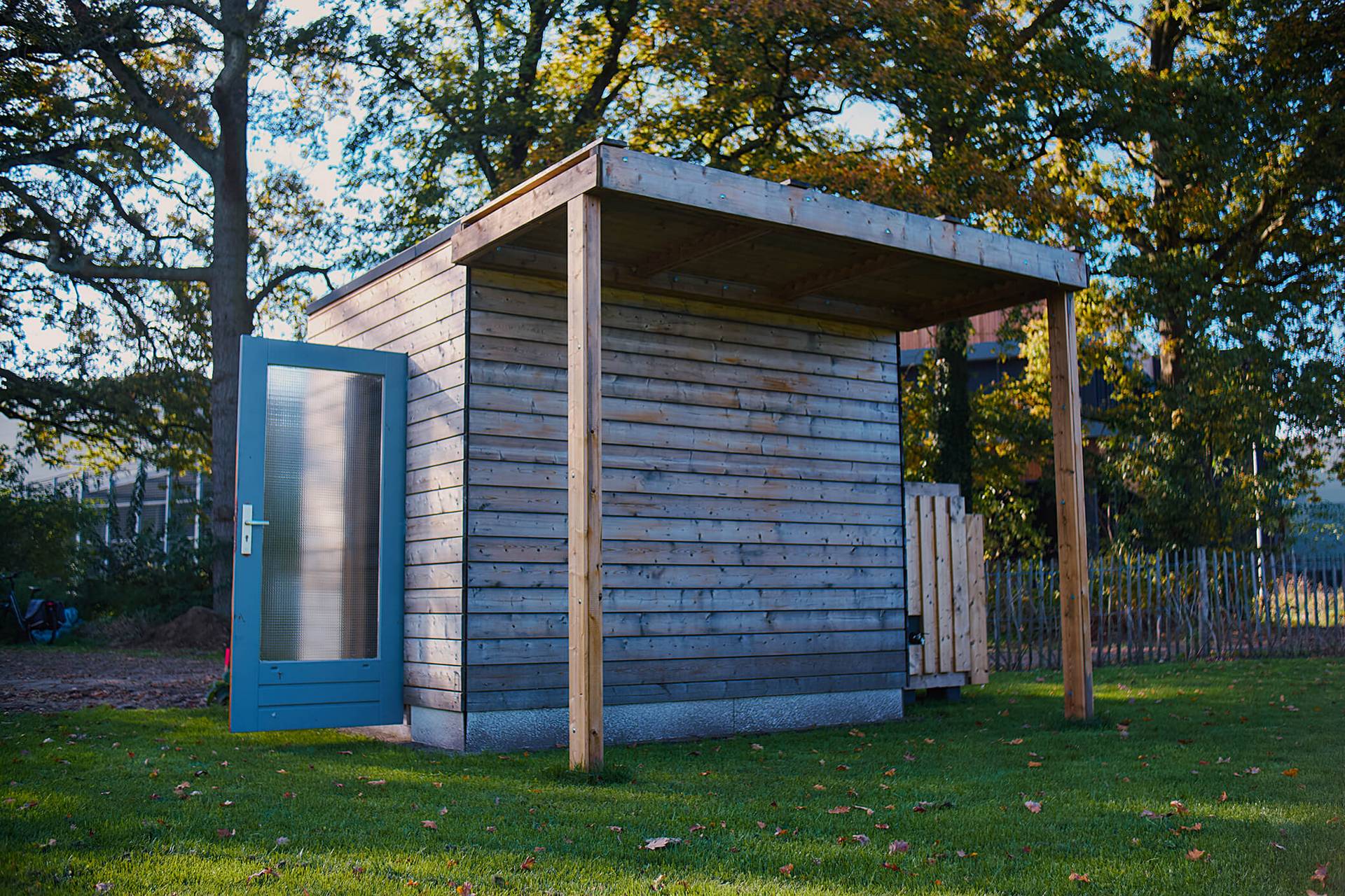 Multifunctionele bergingen voor bijvoorbeeld fiets en scootmobiel. Volledig gemaakt van hoogwaardige restmaterialen afkomstig uit sloop- en oogstprojecten en circulaire productieprocessen.